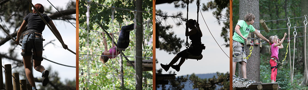 Vse mlade in mlade po srcu čaka gozdna avantura, ki jo sestavljajo mostovi, lestve, mreže, vrvi in žice, po katerih se boste povzpeli ali pa kar zapeljali z ene dogodivščine na drugo.